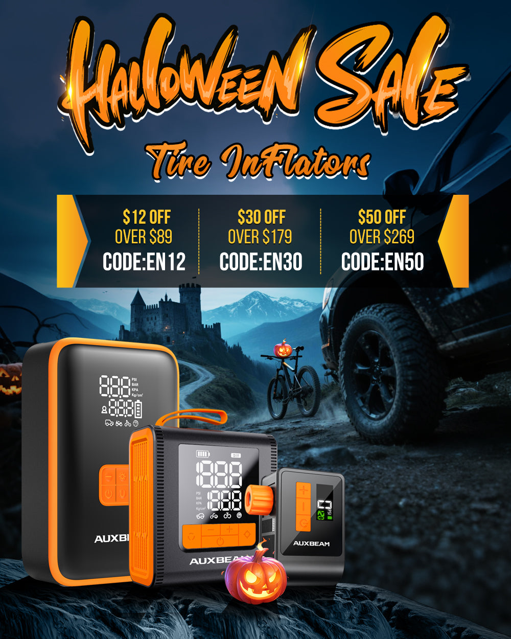 2025 HALLOWEEN SALE - TIRE INFLATORS / JUMP STARTER