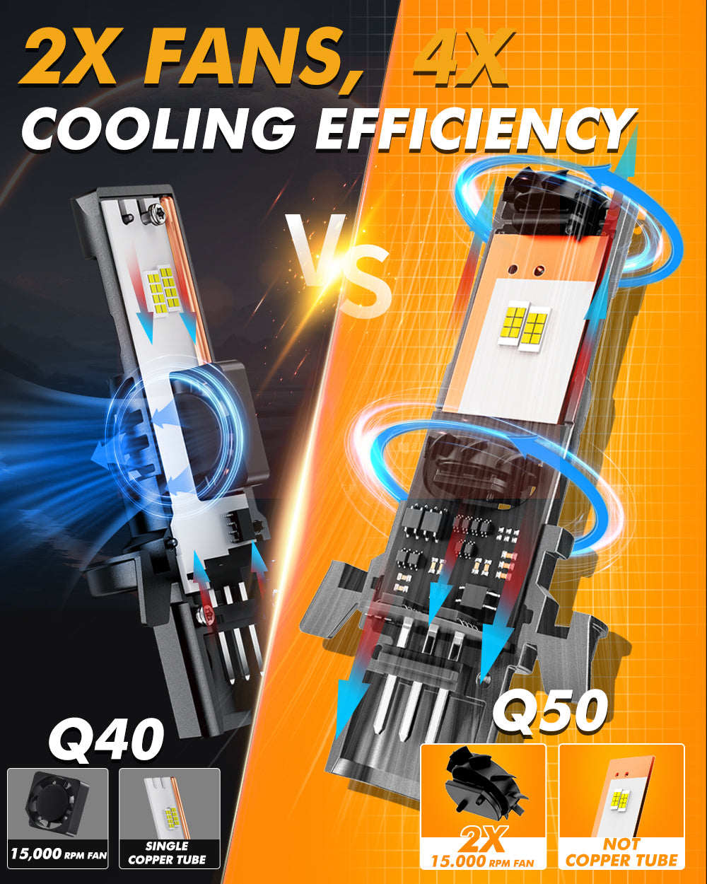 🆕H13/9008 LED Headlight Bulbs Q50 Series Dual Turbo Fans 130W 36000LM 6500K Cool White| 2 Bulbs