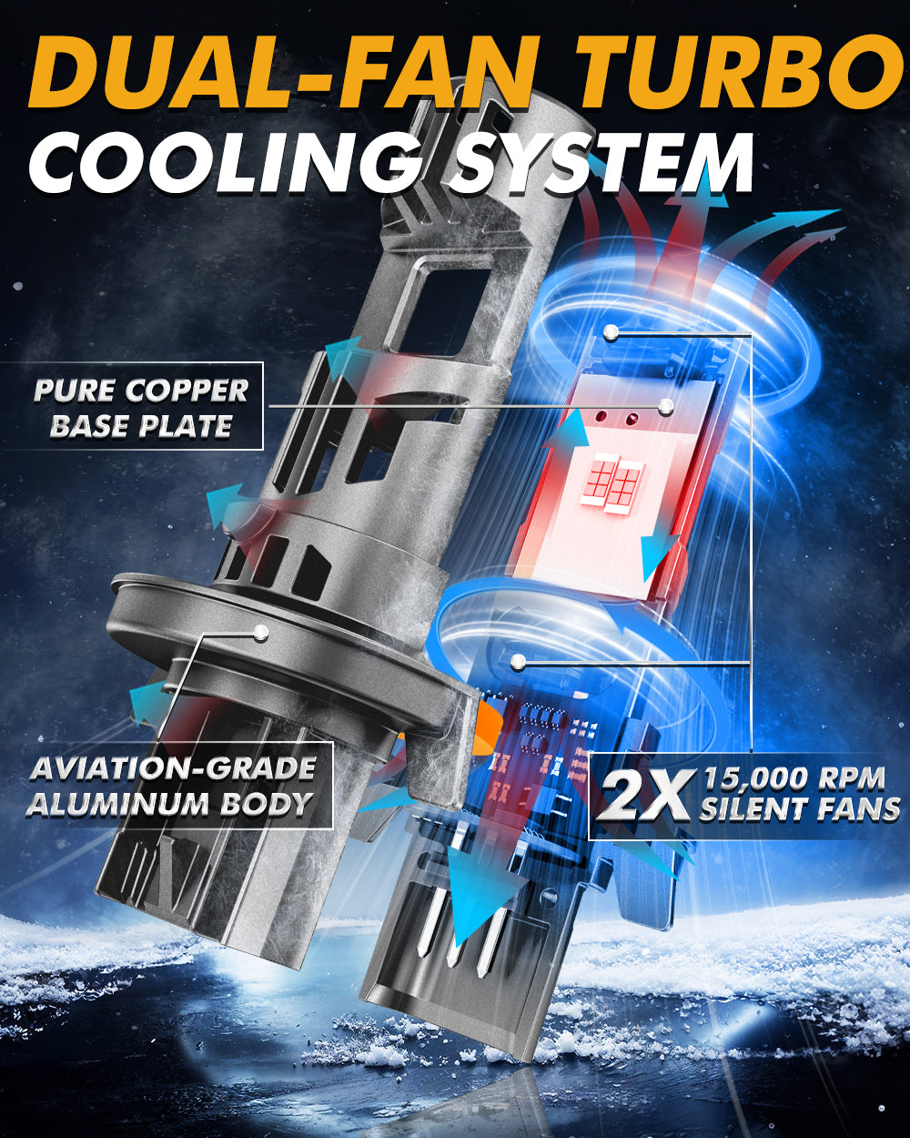- The aviation-grade aluminum body, pure copper baseboard, dual-fan cooling, and built-in temperature control chip form an efficient cooling system, ensuring an ultra-long lifespan of up to 60,000 hours.
