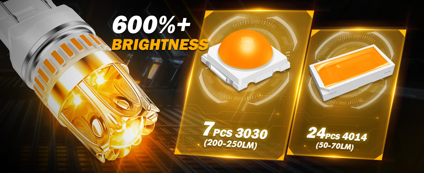 600% BRIGHTER THAN HALOGEN BULBS- 7 pieces of customized 3030 chips + 24 high light output 4014-SMD chips, 360-degree illumination.