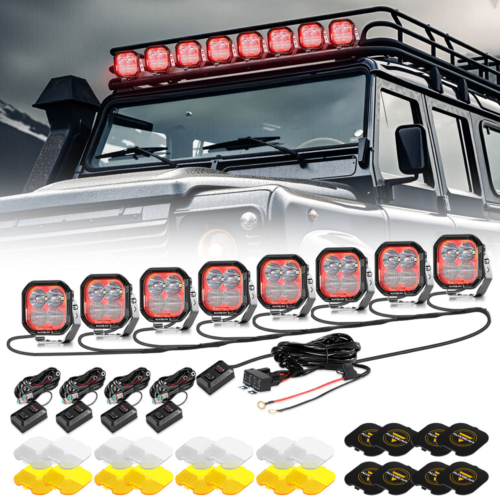Dual-Type LEDs Boost Performance: Each light integrates 2× SFT-12R + 2× SST40-F50 high-performance LEDs, delivering 6,000 lumens per unit. The pair combines for a staggering 12,000-lumen main beam, complemented by a 960-lumen RGB backlight, turning night into day with exceptional penetration.