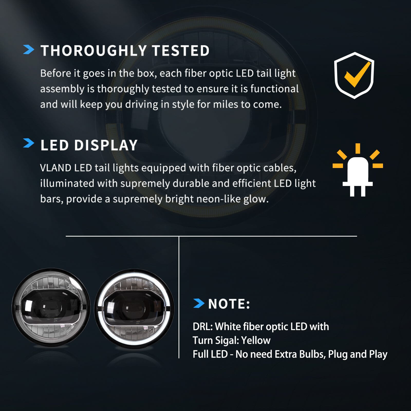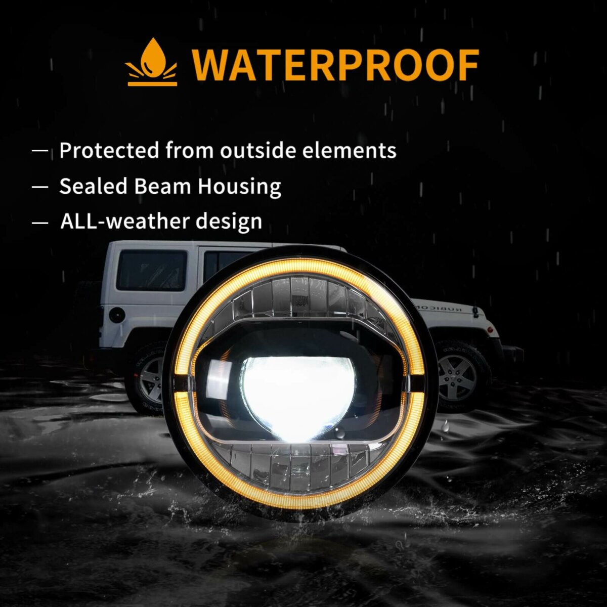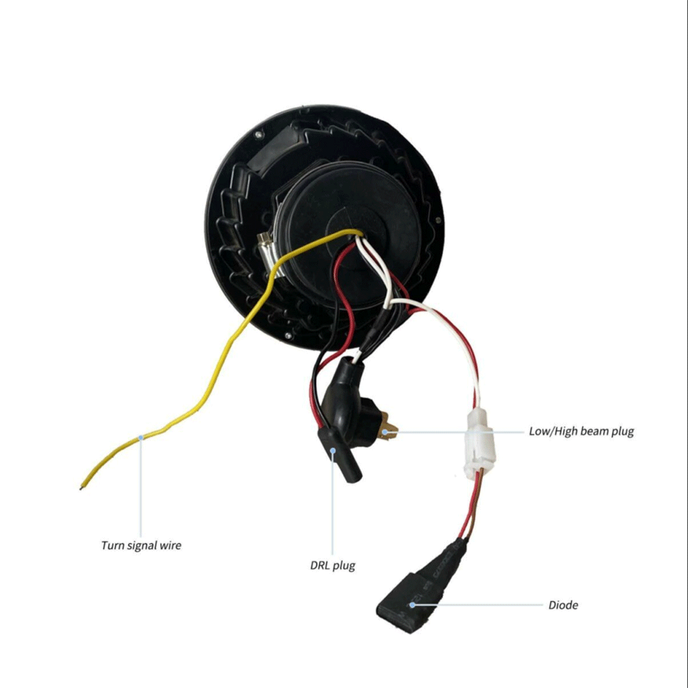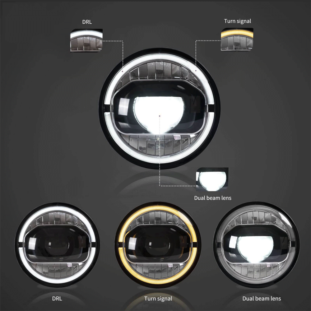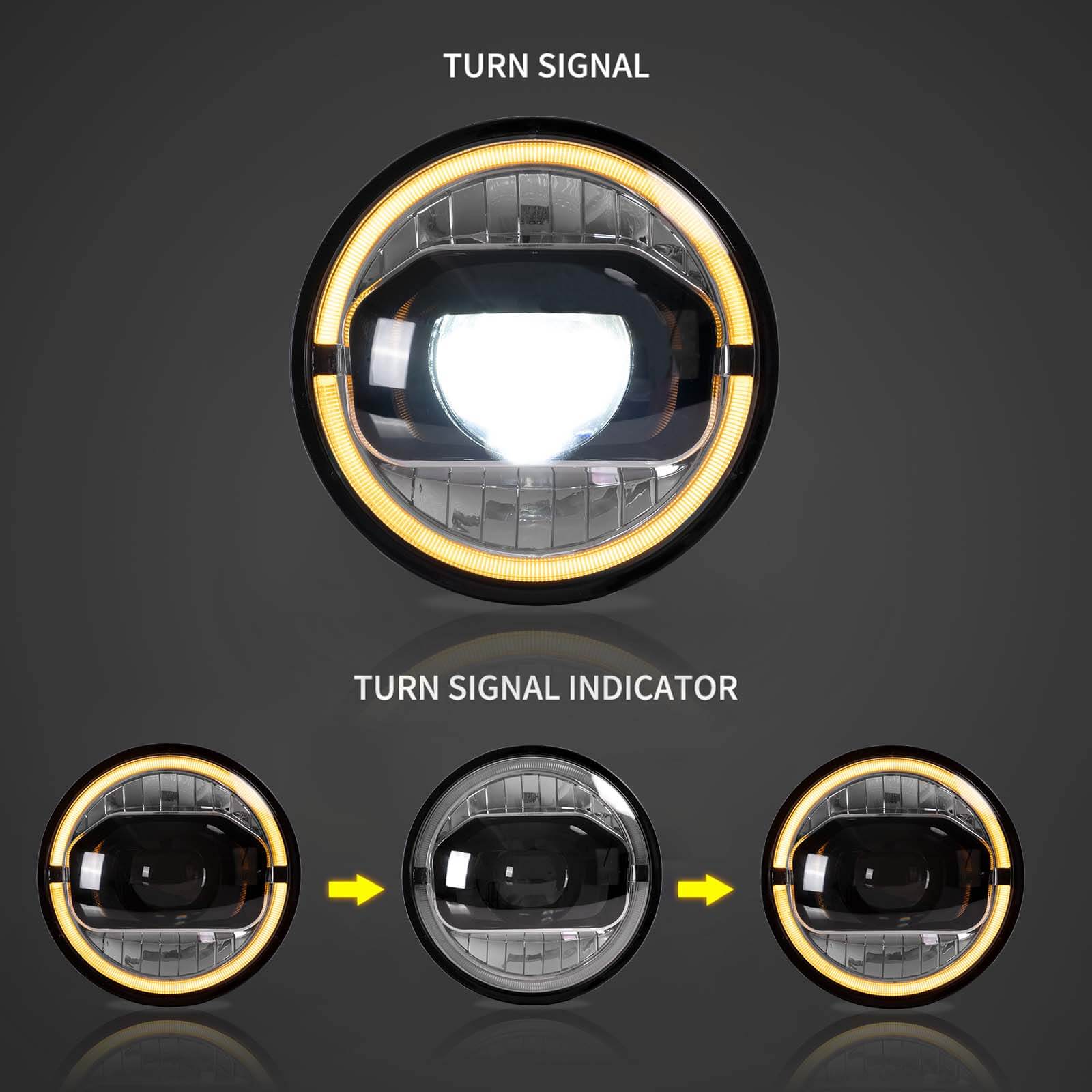 LED Headlight Assembly With Amber Turn Signal For 2007-2017 Jeep Wrangler JK 7 Inches LED Dual Beam Projector