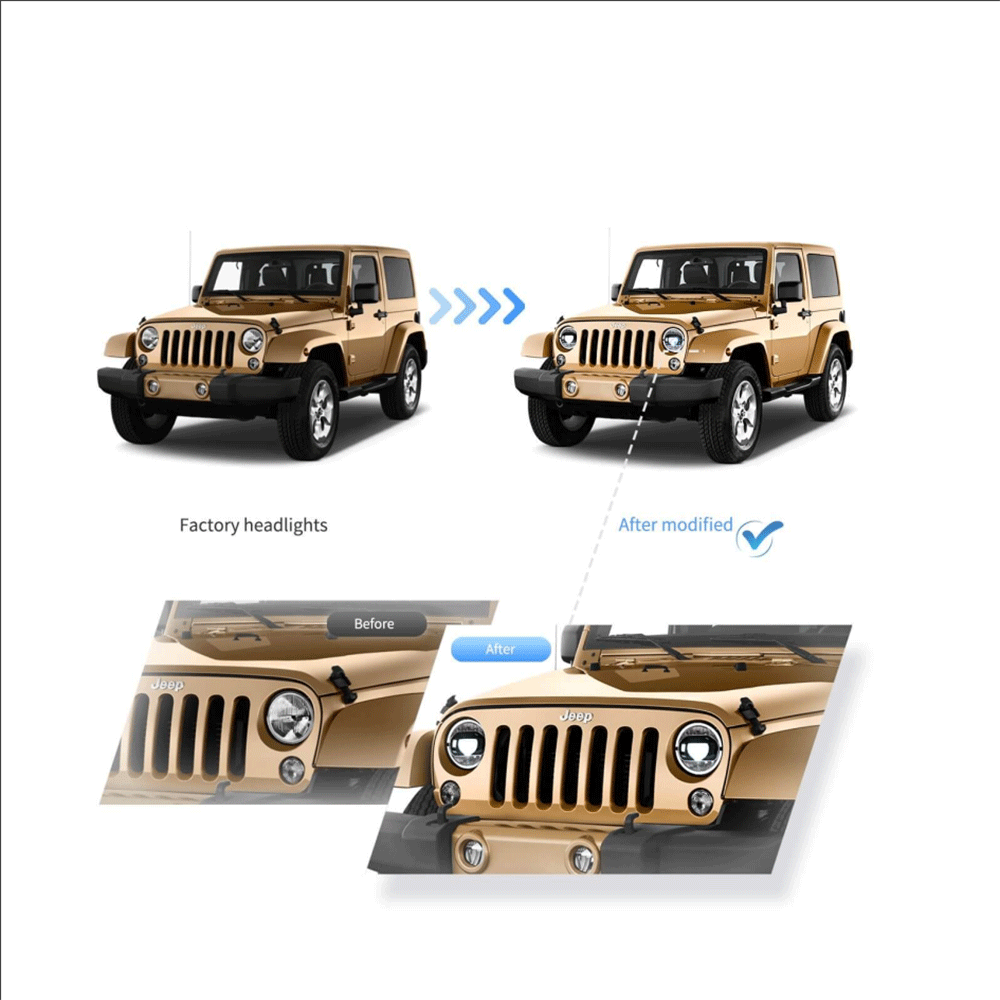 - Fit For Jeep Wrangler 3td Gen 2007-2017 With Stock Halogen Headlights