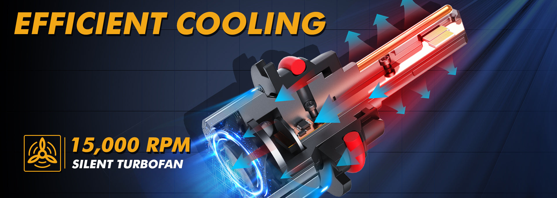 - Five-layer cooling design - The red copper substrates carrying LEDs + 6063 aviation aluminum lamp body + Unique 22PCs heat sinks + Latest liquid-cooling copper tube + 15,000RPM silent turbofan directly improves 150% heat dissipation.