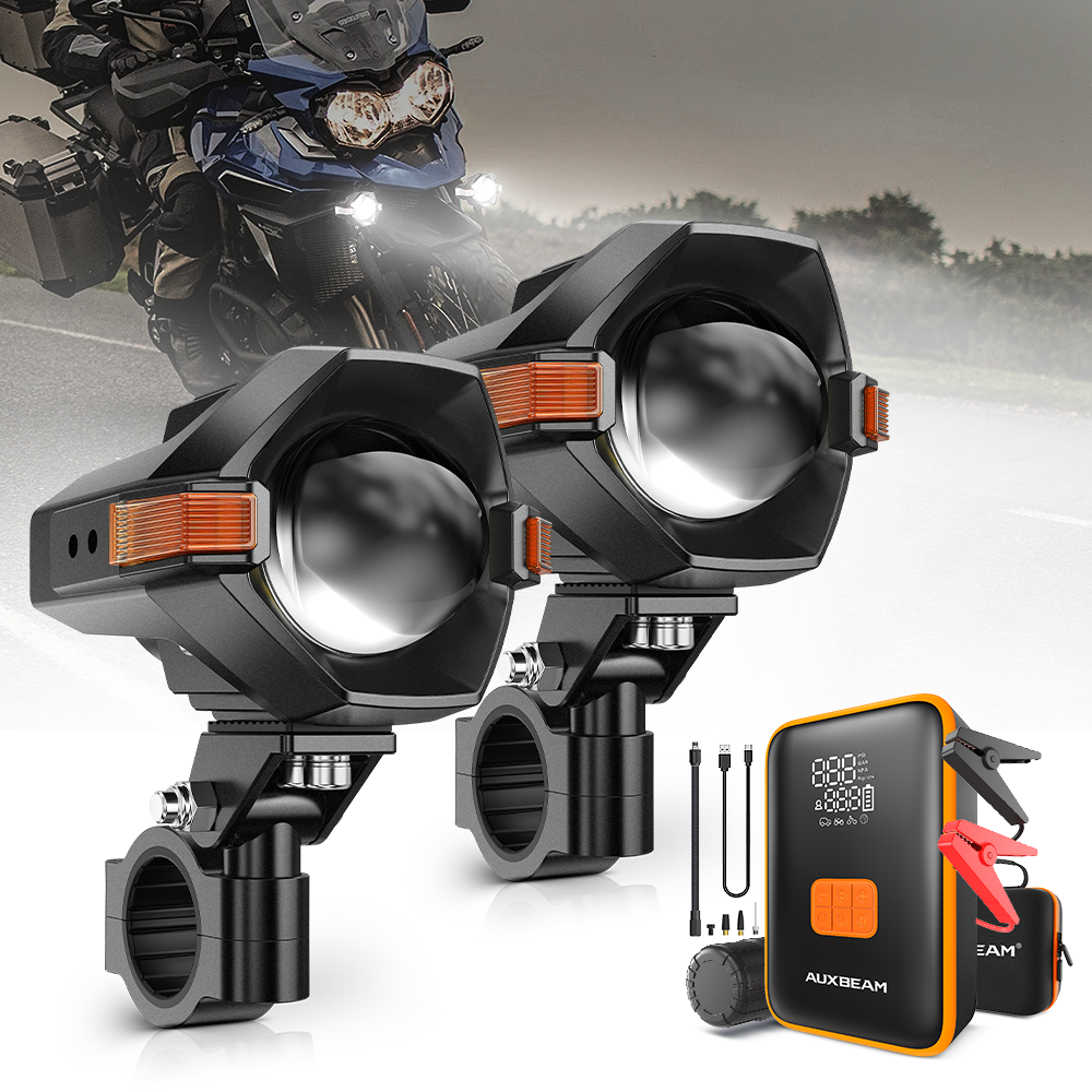 - The housing of the LED motorcycle spotlight is made of die-cast aluminum, Fast heat dissipation, enhances the light's lifespan by over 50,000 hours. IP67 waterproof grade can be used in any bad weather.