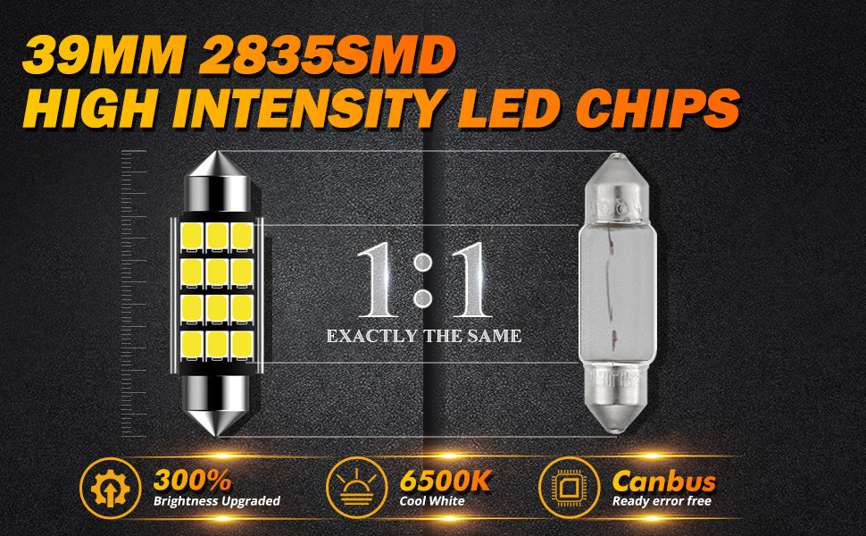 • FIT SIZE: 39MM, 6411,6413,6418,C5W,DE3174,DE3423,DE3425,DE3423,DE3425,DE6423,3423,3425,6423,6461,6475,6476,11005,12854,12844,7456