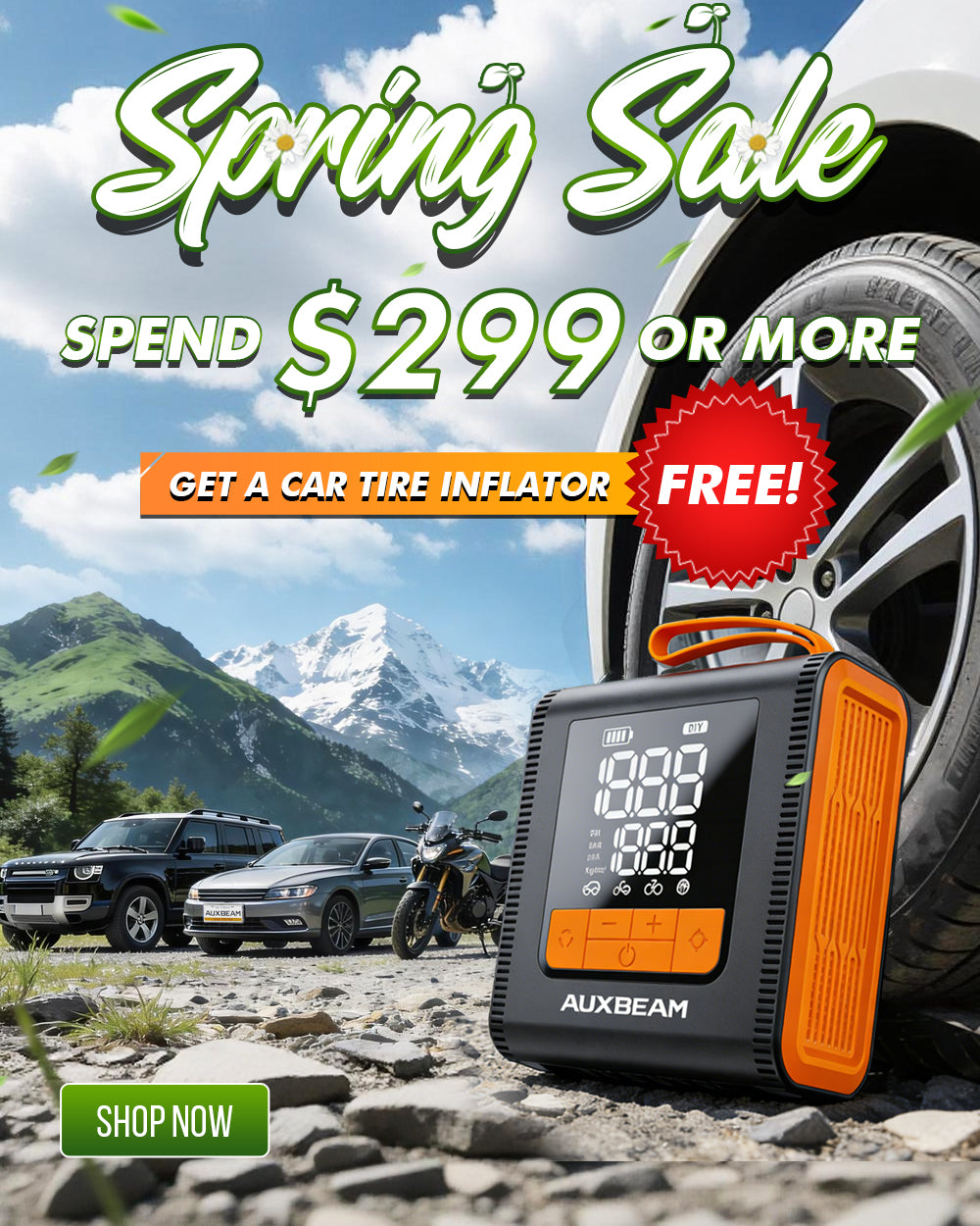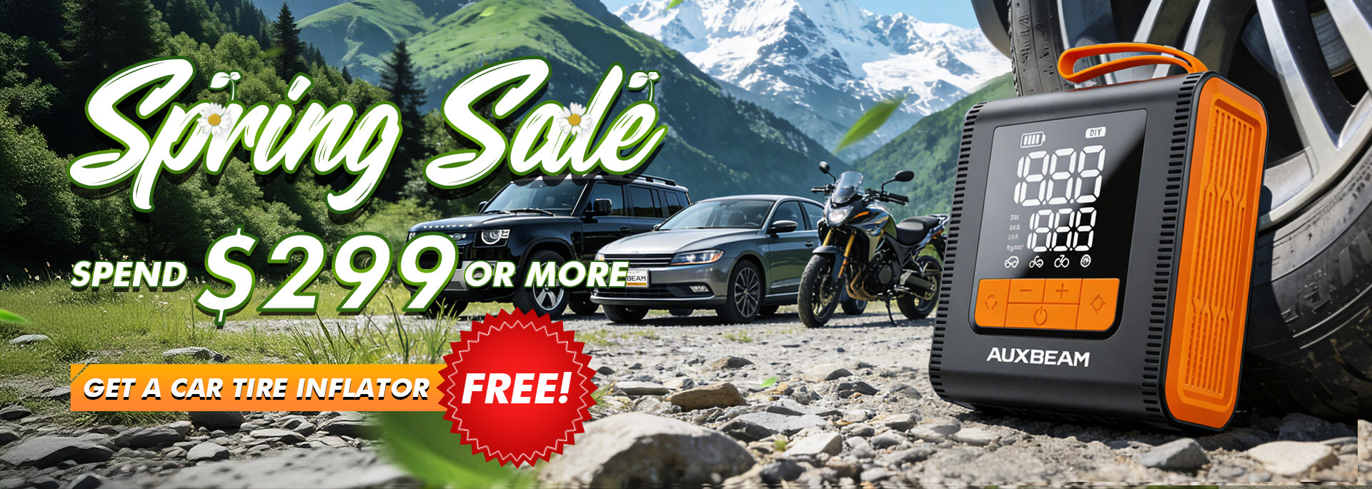 Spend $299 or more and get a free AUXBEAM Tire Inflator!