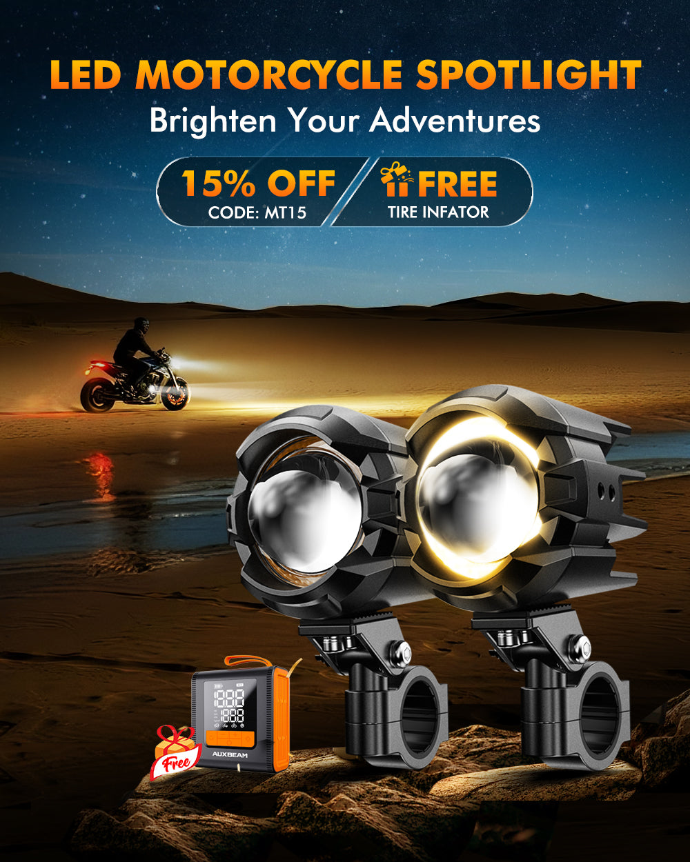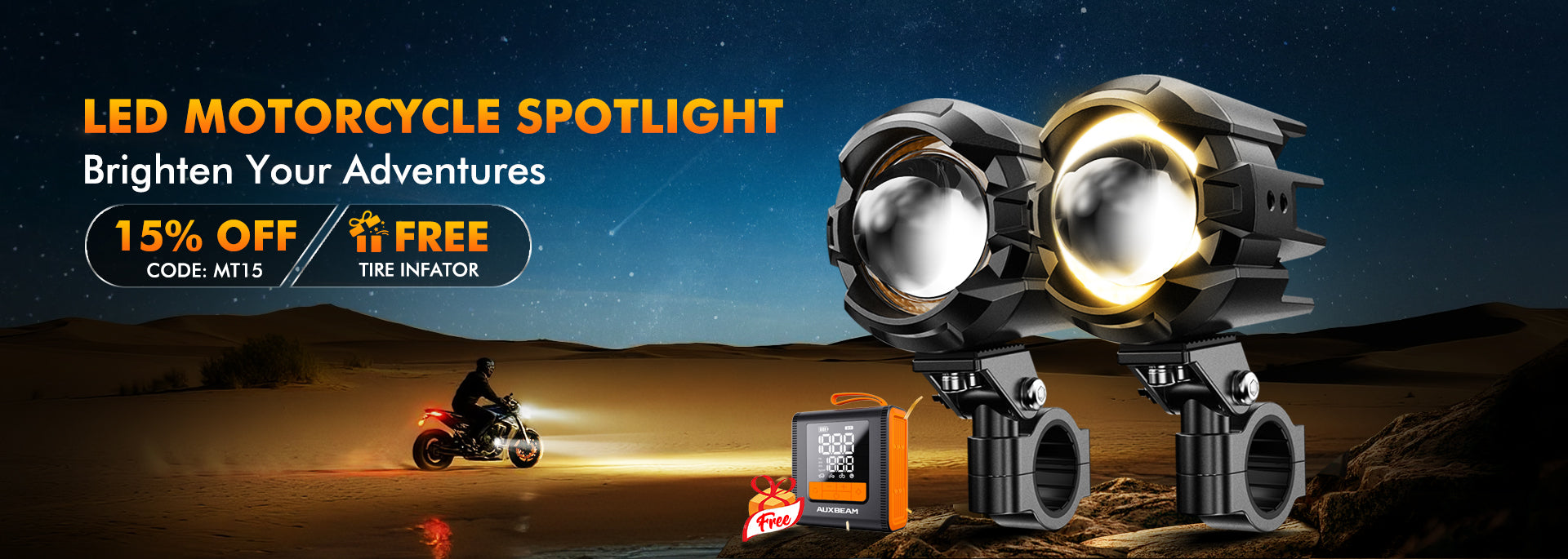 🎁 Enjoy an exclusive 15% discount on our high-performance motorcycle spotlight — and get a FREE tire inflator with your purchase!