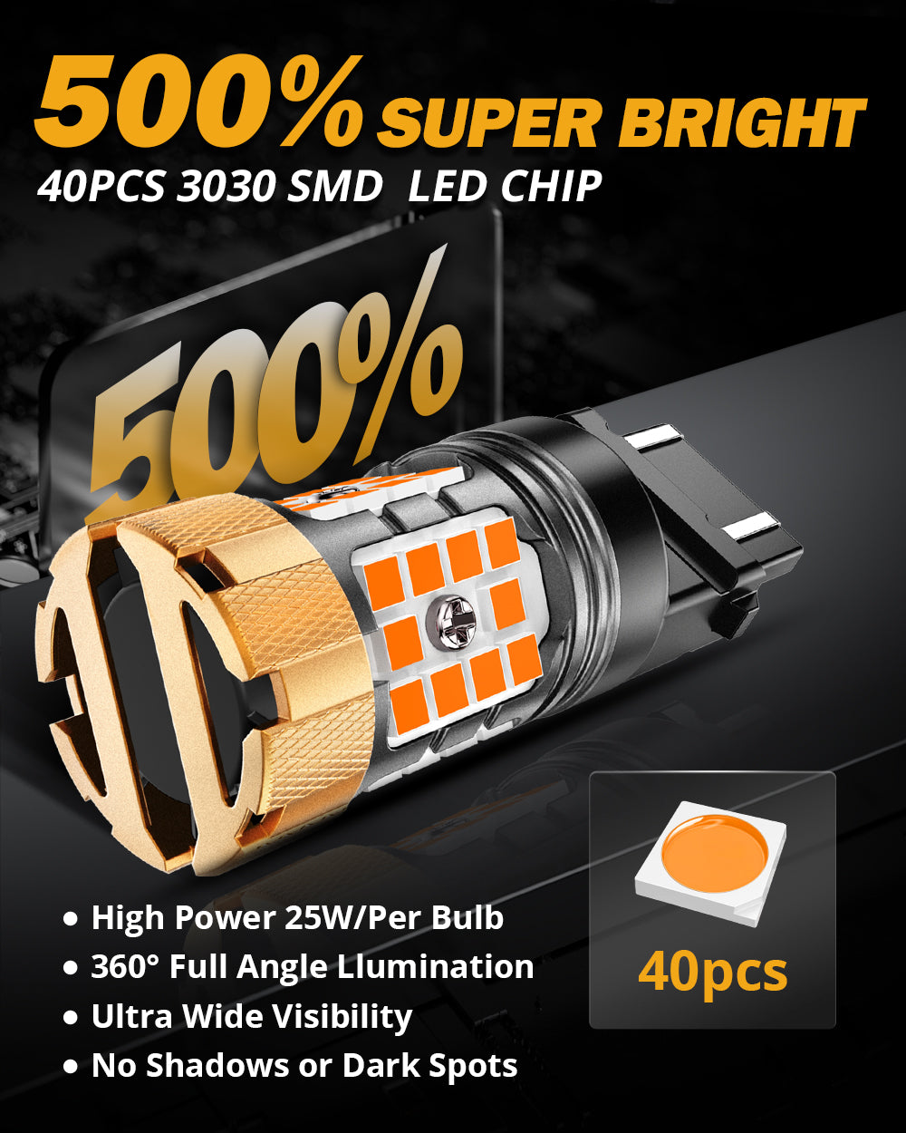- 40PCS high brightness 3030 LED chip design, all amber LED chips for precise surround, 360° full illumination.