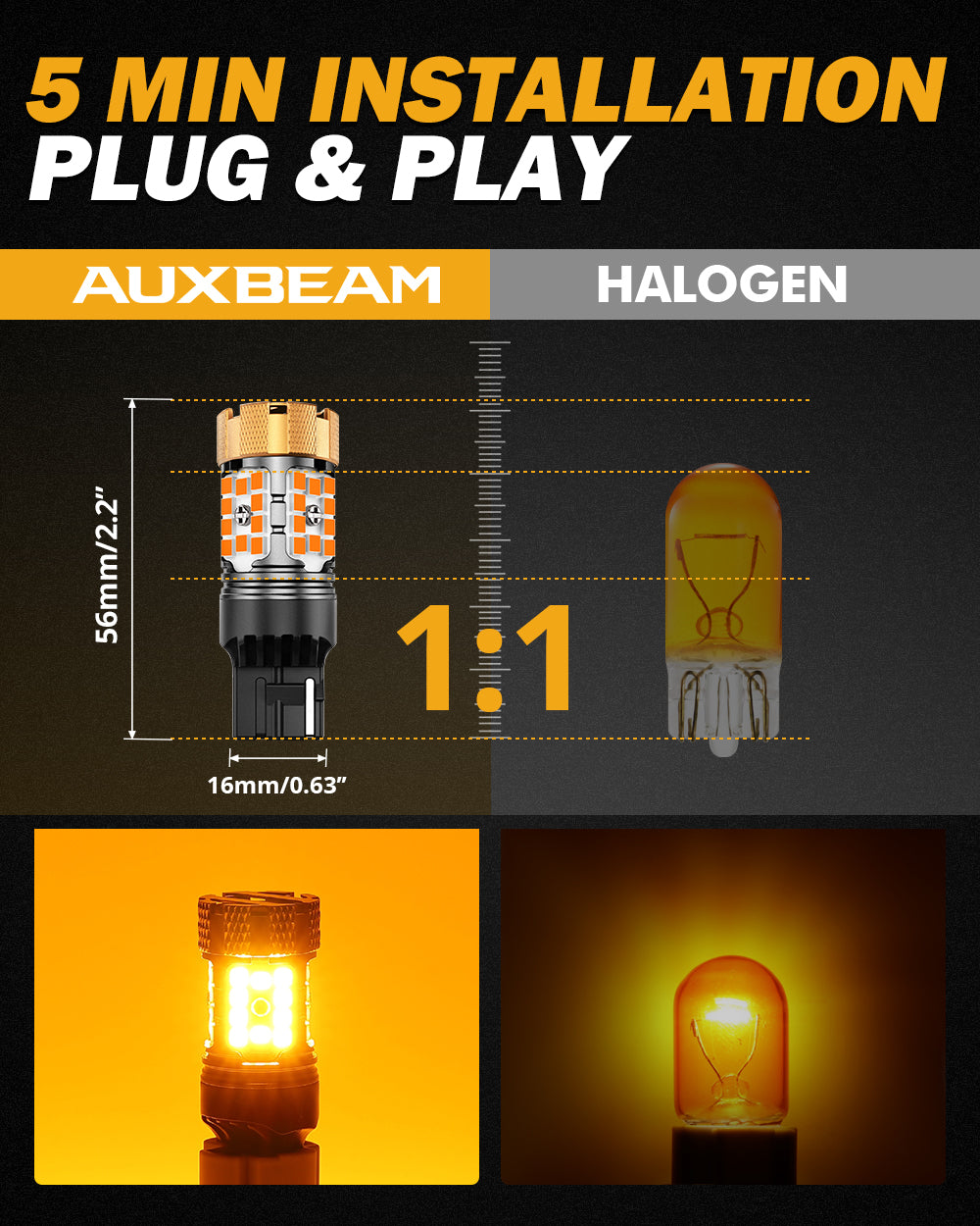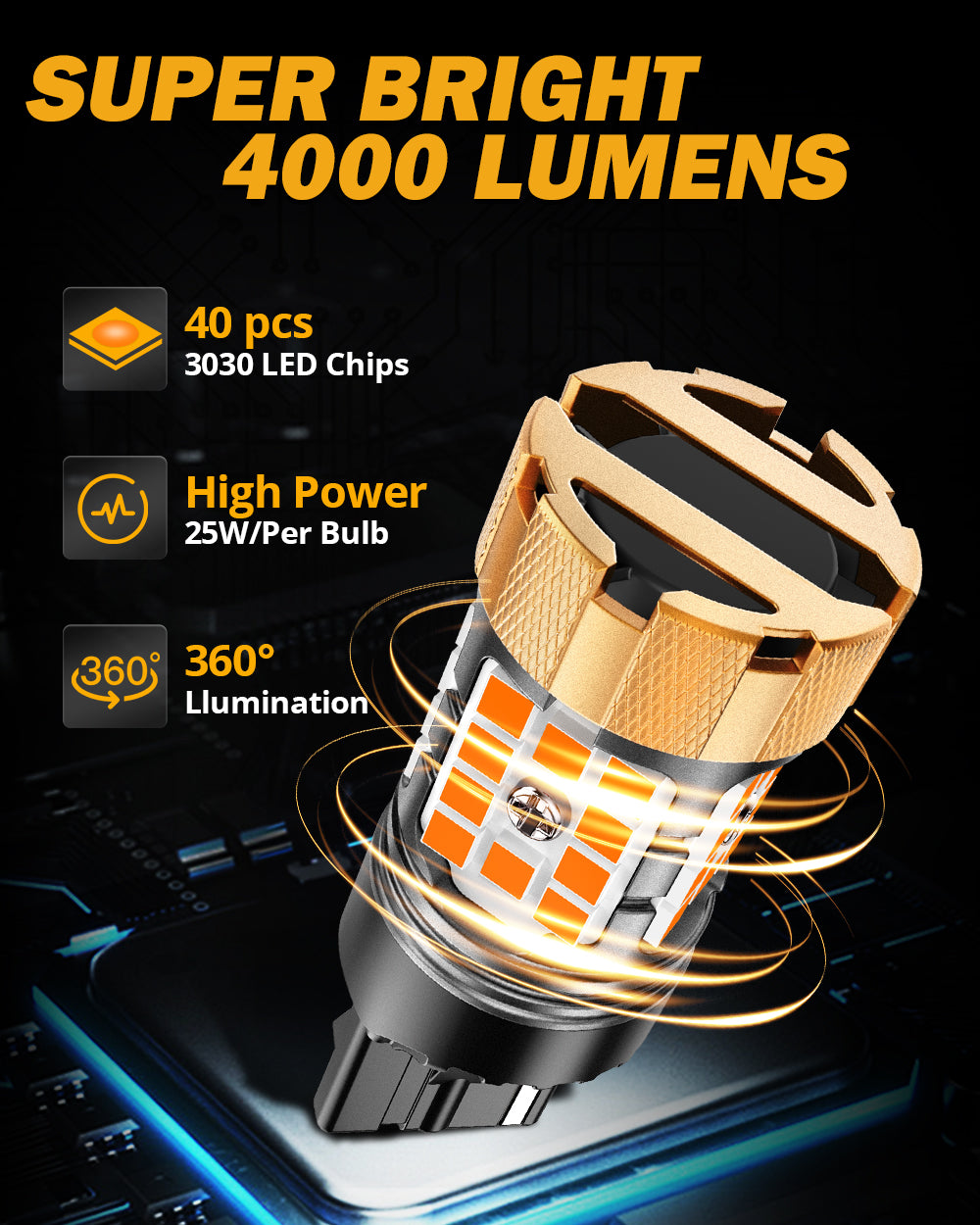 🆕7440 7440A LED Turn Signal Light Rear/Front, Side Marker Light Bulbs 50W 4000LM CAN-Bus Error Free 3000K Amber B21-PRO Series |2 Bulbs