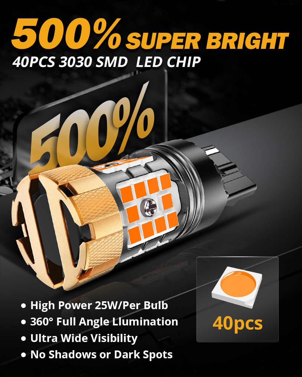 • 40PCS high brightness 3030 LED chip design, all amber LED chips for precise surround, 360° full illumination.